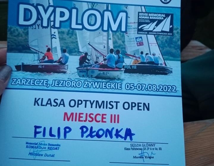 W dniach 5-7 sierpnia na jeziorze odbyły się regaty organizowane przez Beskidzką Ligę Regatową - XXVIII Memoriał Adama Banaszka. Tam Filip zajął trzecie miejsce. Gratulacje!