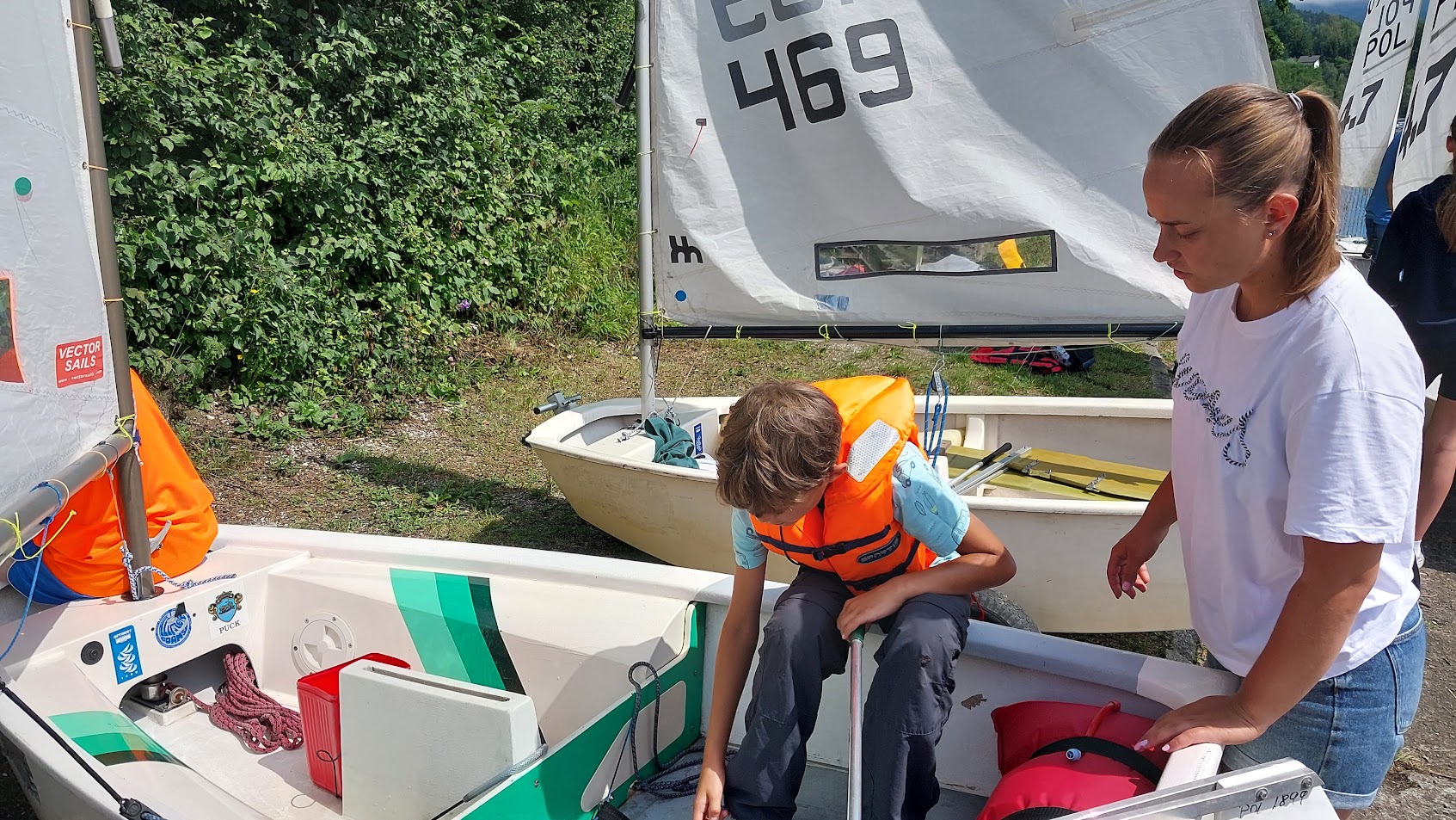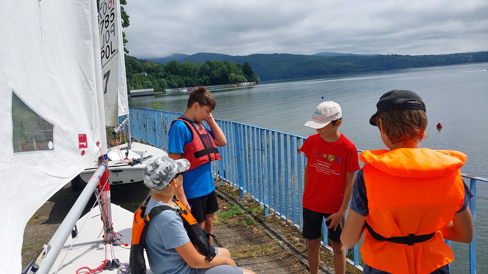 Dzisiaj zaczęliśmy drugą szkółkę. Szkolimy na niej 11 osób, a 3 z nich zaczynają swoją przygodę z żeglarstwem. Przed południem uczestnicy dowiedzieli się, jak wykonać zwrot i przejść pod żaglem oraz poznali podstawowe węzły żeglarskie.Po południu zeszliśmy na wodę i pływaliśmy na dwóch rozstawionych bojach. Wiał silny wiatr, który spowodował, że Ania i Ewa wywróciły łódkę aż trzy razy.Łódkami sterowali doświadczeni zawodnicy, a uczestnicy siedzieli w nich i zaznajamiali się z żeglarstwem uważnie obserwując, co oni robią.