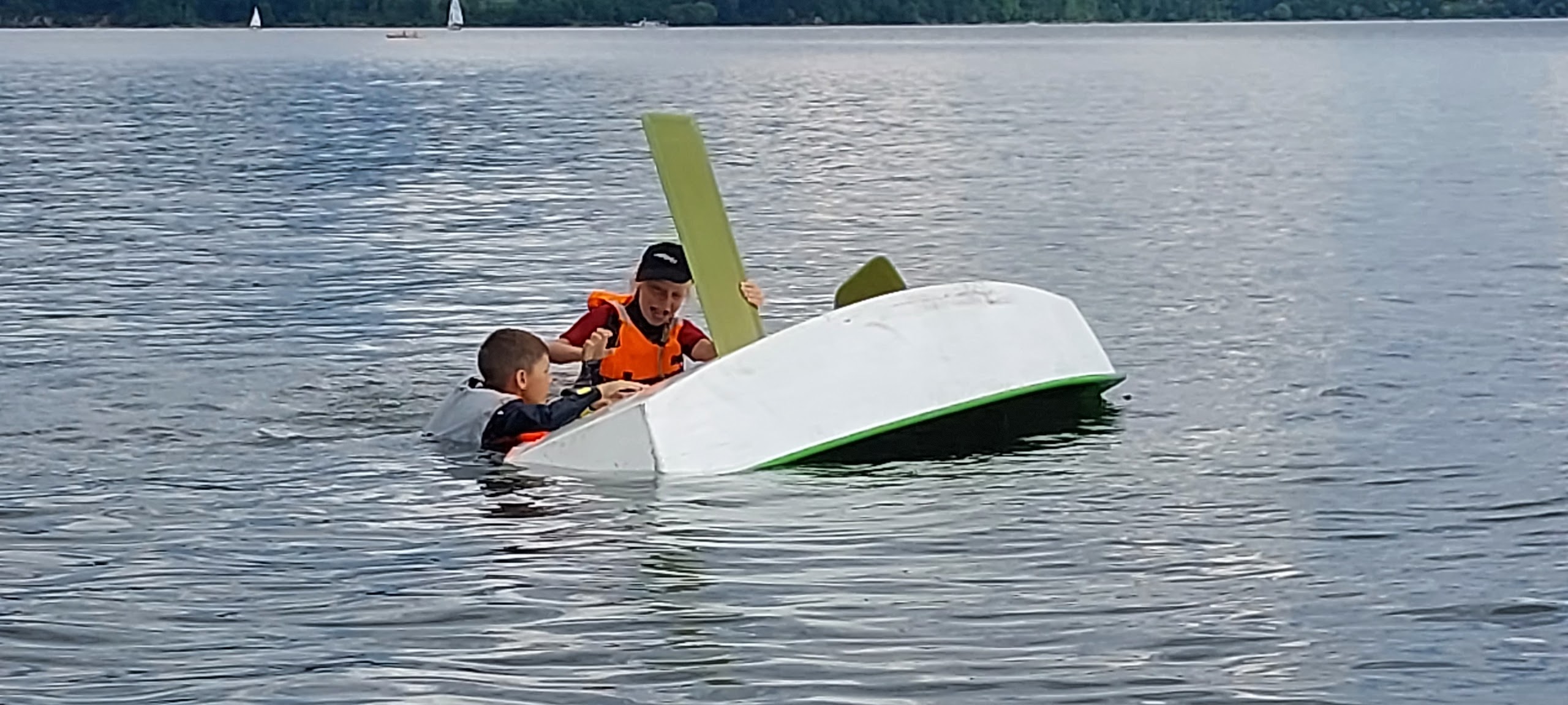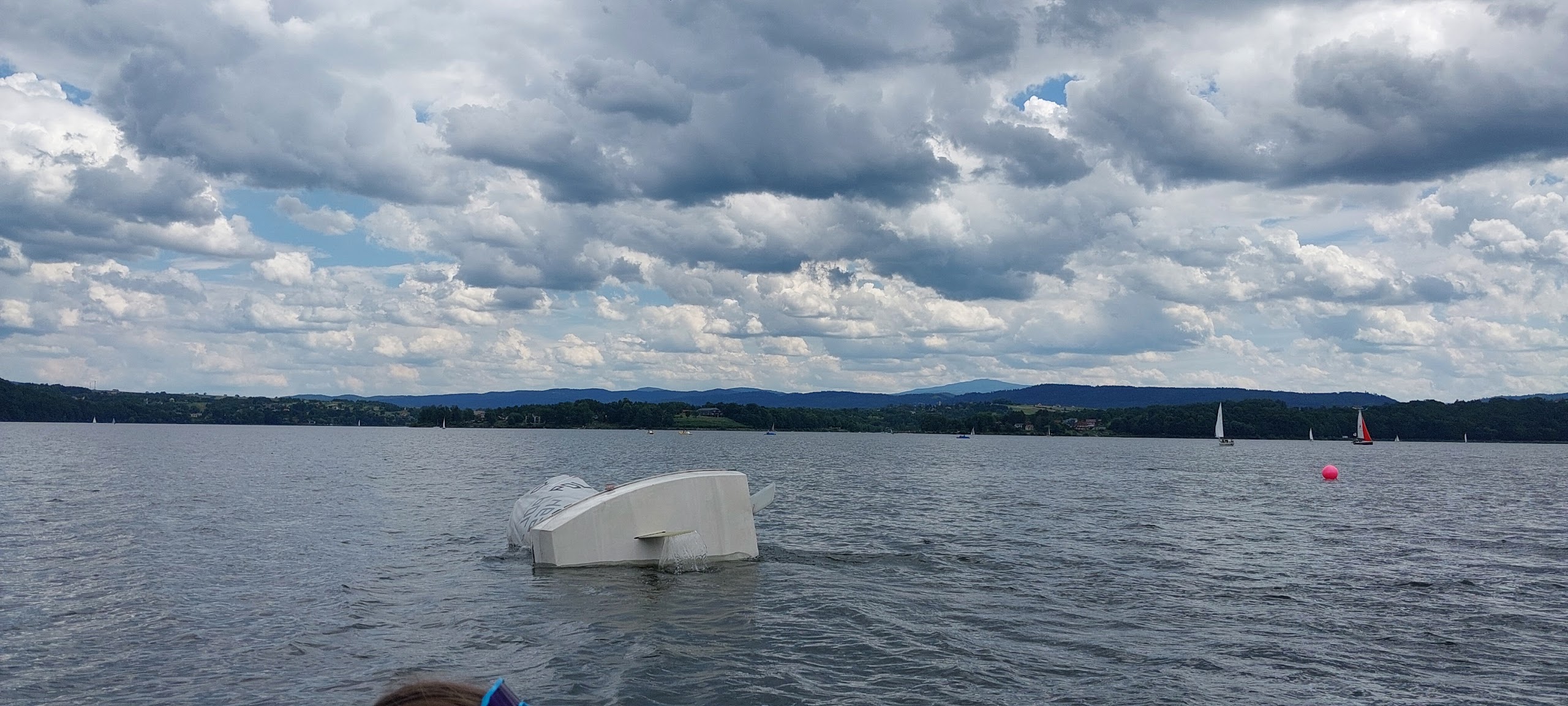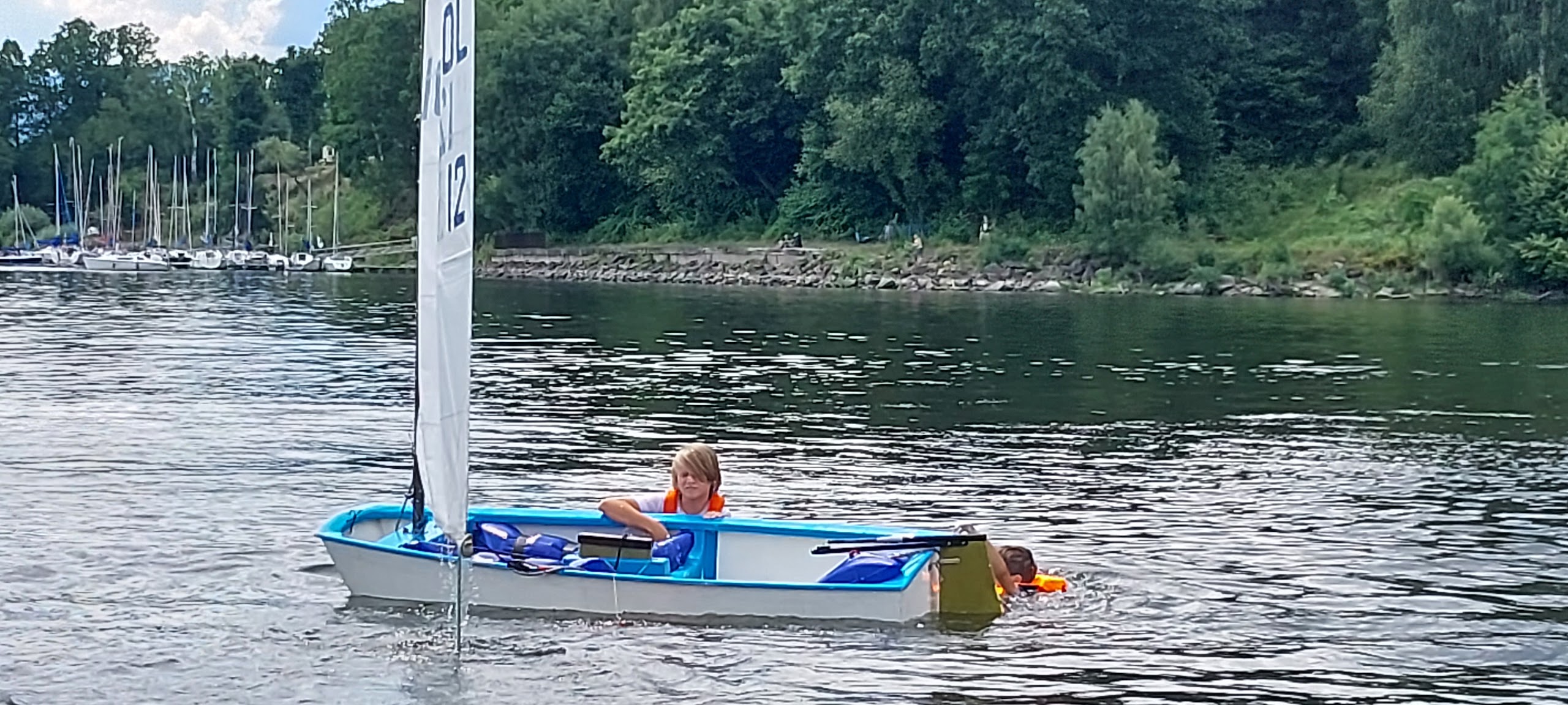 Dziś był ostatni dzień szkółki, w którym uczestnicy mieli szansę wykazać się zdobytymi umiejętnościami.Najpierw pływaliśmy po dwóch rozstawionych bojach. Po południu mieliśmy okazję powywracać łódki. Każdy uczestnik wykonał „grzyba” i postawił łodkę.Następnie, po zejściu z wody miało miejsce zakończenie szkółki. Wszyscy dostali dyplom oraz upominki - model żaglówki, brelok i zakładkę do książki.